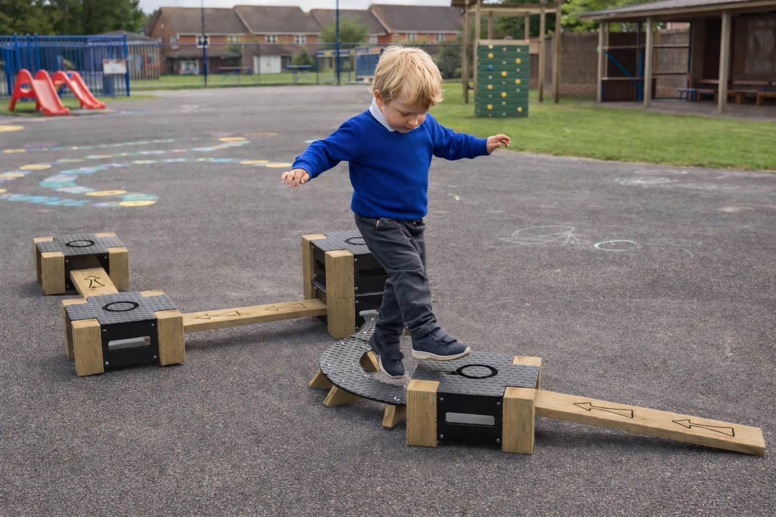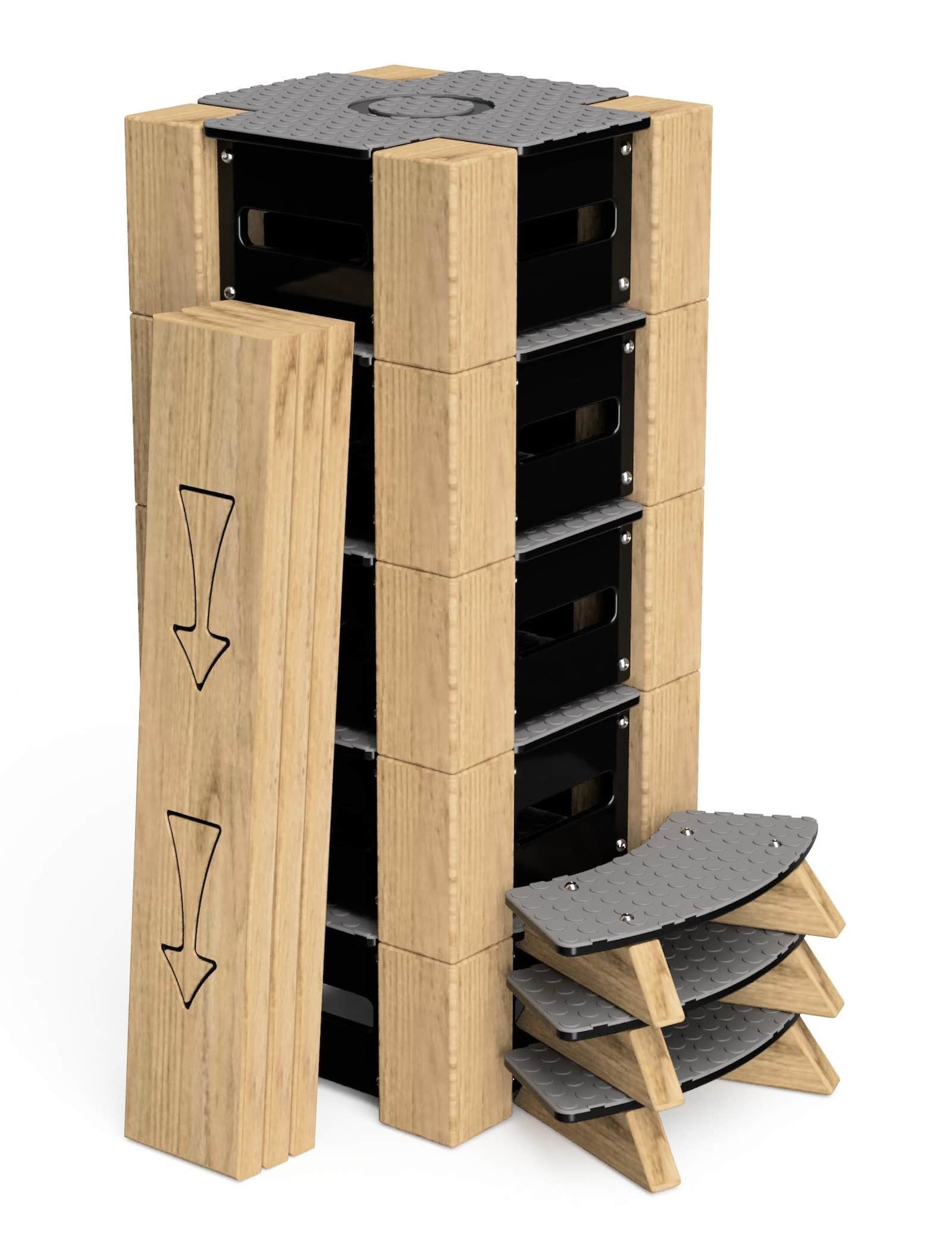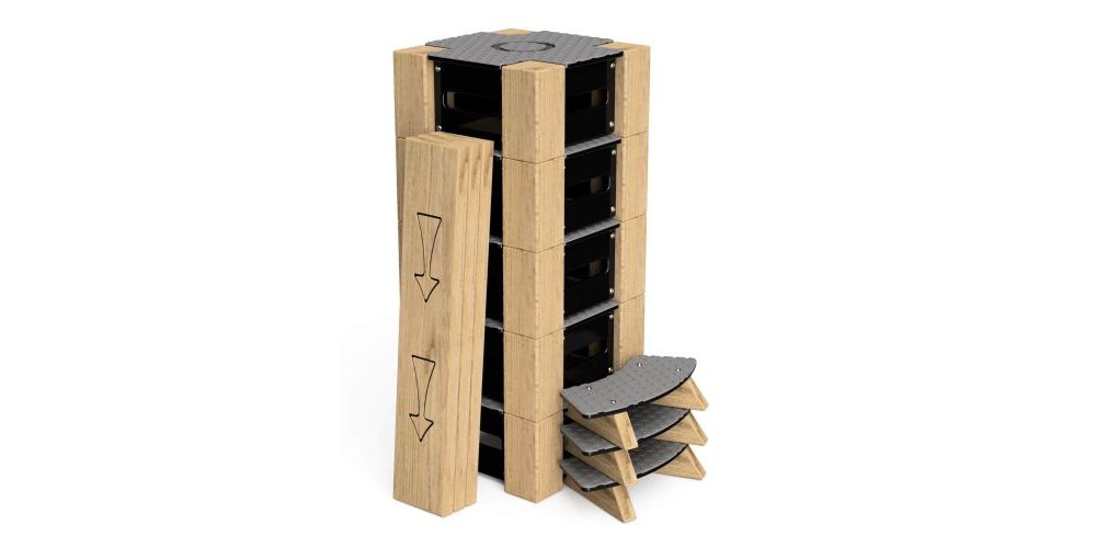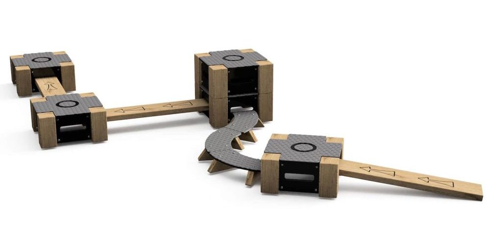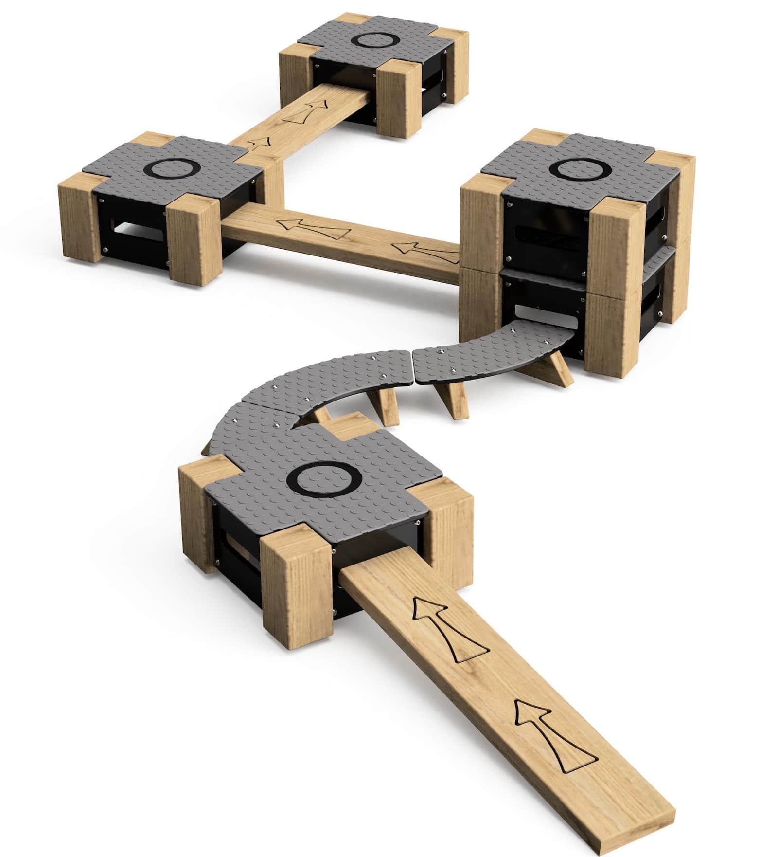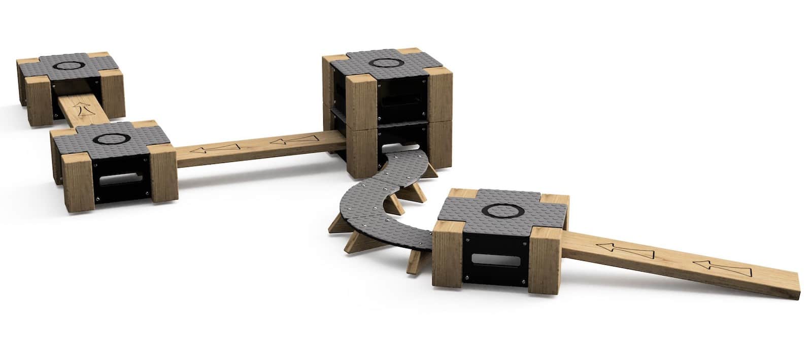 Lock Block 11-Piece Set is a versatile indoor and outdoor play trail system designed to promote balance, coordination, and active movement through configurable pathways. Manufactured from durable, play-grade timber and high-density polyethylene (HDPE), each unit is engineered for strength, weather resistance, and long-term performance. The modular blocks and linking beams create secure, interlocking trail formations, while the textured, slip-resistant surfaces enhance user safety during active play. The system is fully stackable for compact storage when not in use, making it ideal for flexible spaces.